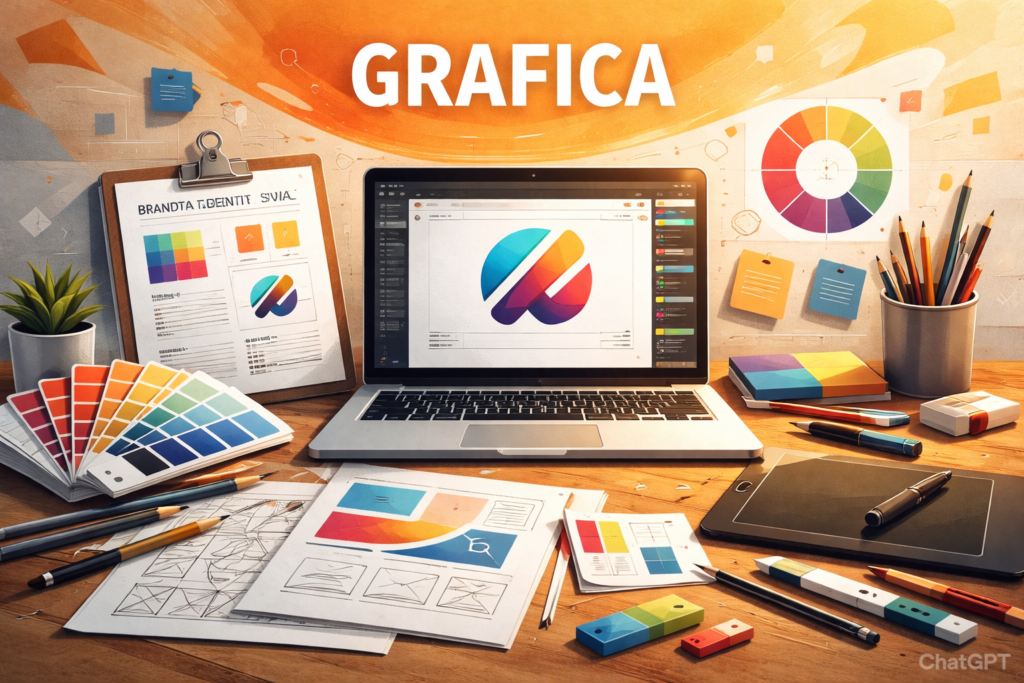 La grafica è il primo impatto che il tuo brand ha con il pubblico. Progettiamo identità visive coerenti, moderne e riconoscibili, capaci di trasmettere professionalità e personalità. Dal logo ai materiali digitali e stampati, curiamo ogni dettaglio per costruire un’immagine forte e distintiva, in linea con i tuoi valori e i tuoi obiettivi di mercato.